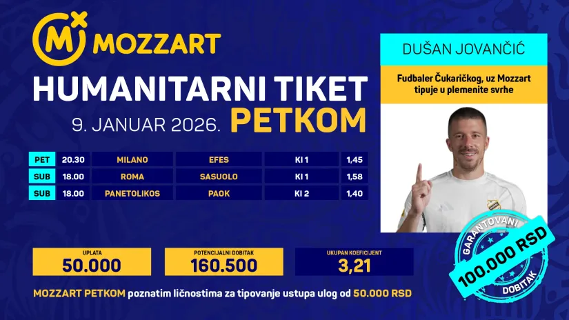 Mozzart Sport i Dušan Jovančić vas pozdravljaju uz informaciju da smo do sada u akciji donirali ukupno 42.628.609 dinara.