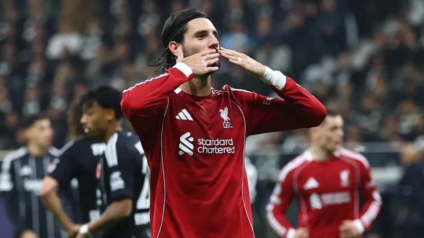 /Kristensen 25 - Ekitike 35, Van Dajk 39, Konate 44, Gakpo 66, Soboslaj 70/