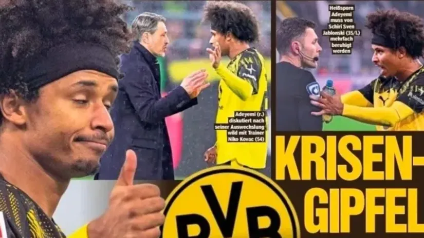 Karim Adejemi nije dobro igrao u meču protiv Menhengladbaha. Početkom drugog dela postao je veoma nervozan, dobio žuti karton, pa je Niko Kovač da bi predupredio ono što su svi videli - isključenje i najavi - odlučio da izvede mladog napadača iz igre. Ovaj je ponovo reagovao neadekvatno, iščuđavao se, pravio grimase, mahao rukama, na kraju došao u verbalni sukob ne samo sa trenerom, nego i sa sportskim direktorom Sebastijanom Kelom, kada ga je ovaj sprečio da ode pravo u svlačionicu.