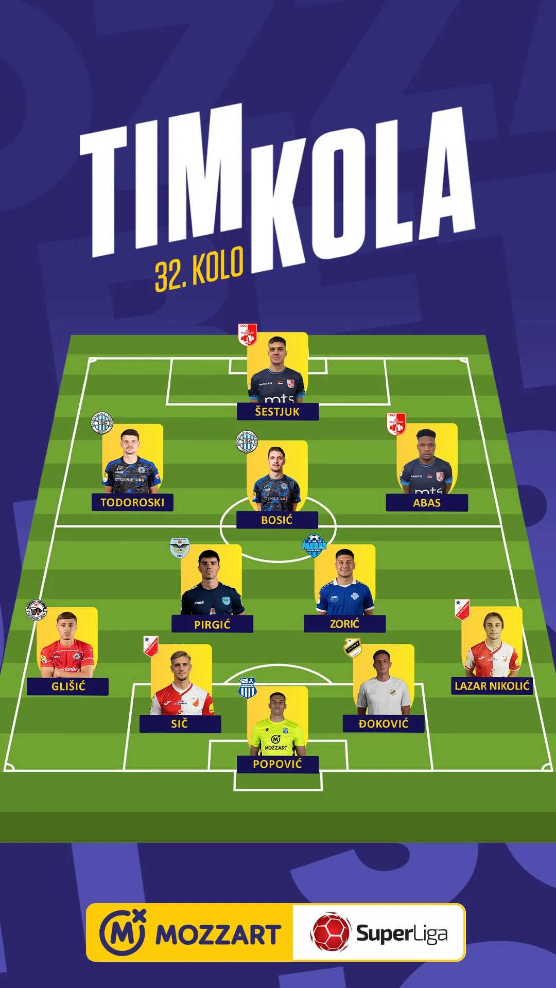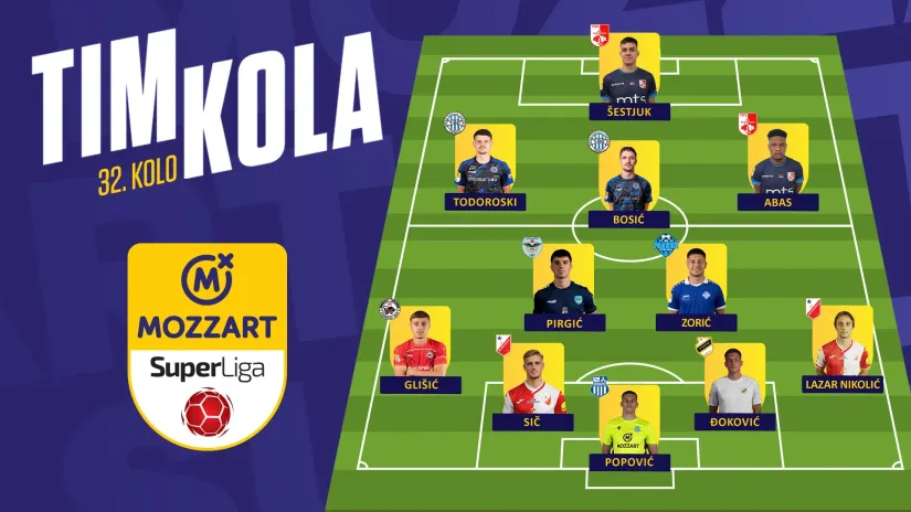 Retko kad se dešava da u timu kola Mozzart Bet Superlige nema nijednog igrača iz Crvene zvezde i Partizana, štaviše, u slučaju najboljeg tima 32. kola domaćeg šampionata ima čak pet momaka iz klubova koji se nalaze u plej-autu. Naravno, sve kao plod činjenice da je borba za opstanak mnogo zanimljivija od one za vrh tabele.