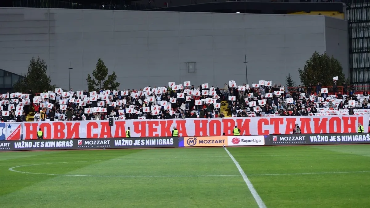 Na derbiju protiv Crvene zvezde, koji je Vojvodina dobila veličanstvenim preokretom (3:2), na istočnoj tribini tokom utakmice, tamo gde „udara“ kamera, stajao je transparent „Novi Sad čeka novi stadion“.