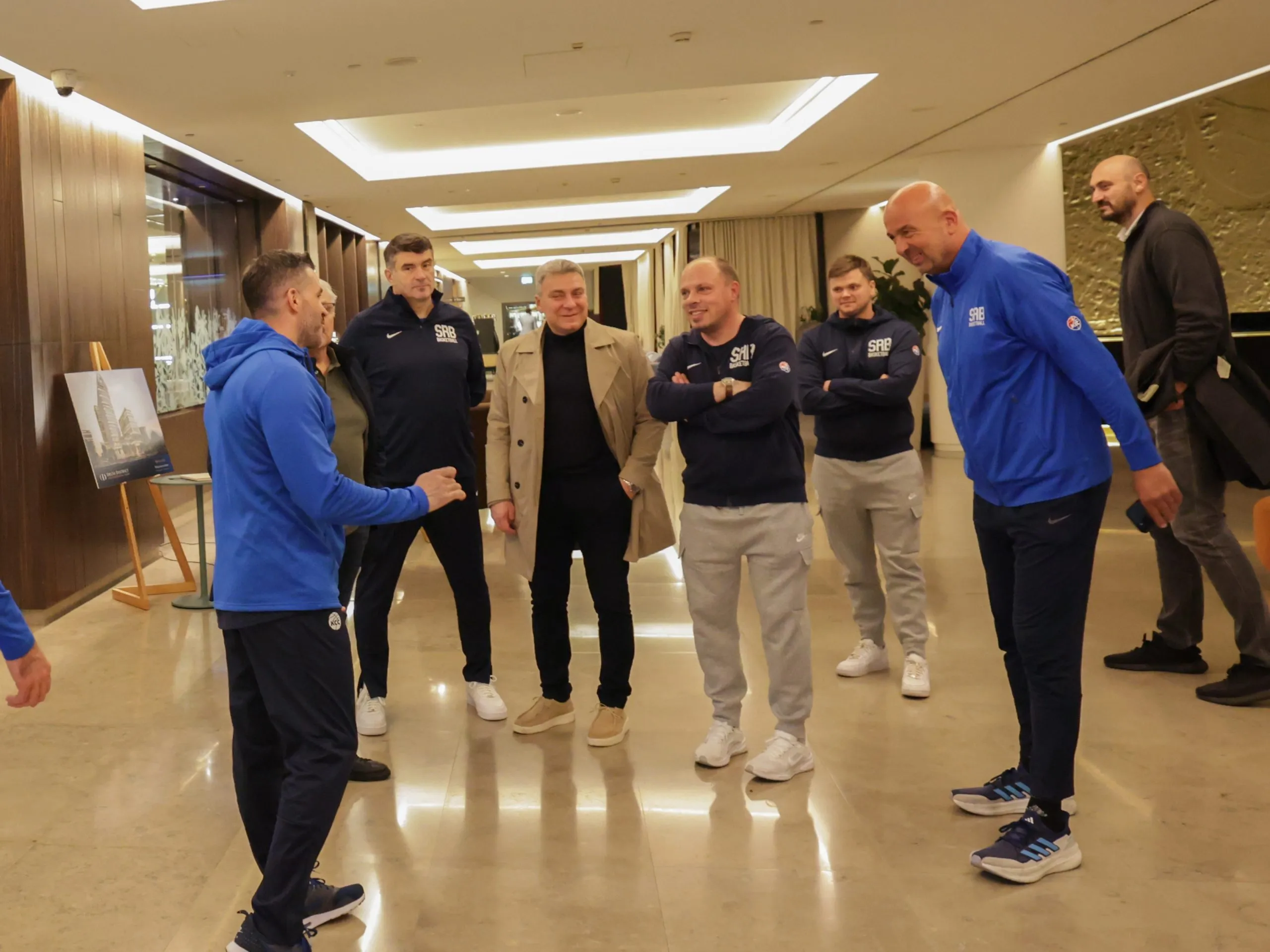 U Hotelu Crowne Plaza igrače i stručni štab pozdravili su predsednik Košarkaškog saveza Srbije dr Nebojša Čović i potpredsednik za mušku košarku Nenad Krstić, poželeli ekipi uspešan start novog ciklusa.