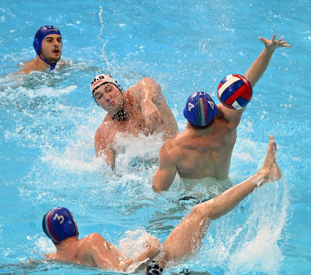Onaj čovek čija je fotografija bila jedan od simbola uspeha u Parizu: Dušan izranja iz vode na šut, a ceo američki tim mu izlazi u blok ili zatvara put ka svom golu. Toliki je strah kada Mandić, kao neka zver, krene da izranja iz vode sa loptom u ruci. A, kada se digne tako, kao gnevan, do pasa iznad vode i šutne, tu golman ne može ništa. Ili je uglavnom gol ili lopta pogađa okvir. Retki mogu da se jave da su uspeli da zaustave taj projektil srpskog „broja dva“ (na kapici).