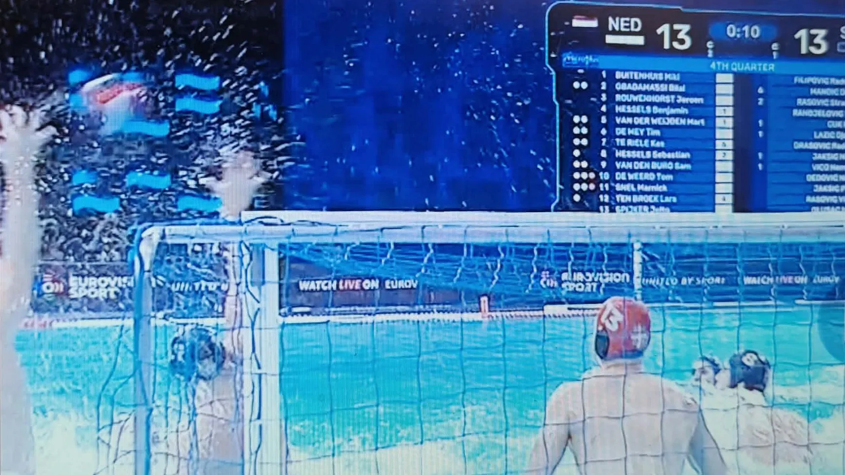 Arbitri su pogledali video snimak, njihova je kraj bazena poslednja, no iz jednog ugla se moglo videti da vreme nije isteklo pre no što je Kas te Rile izbacio loptu iz ruke. Na montiranom ekranu iliti video-zidu sa detaljnom statistikom i rezultatom, koji se nalazio iza gola Holandije, stajalo je 0:10. Slika je postala viralna...