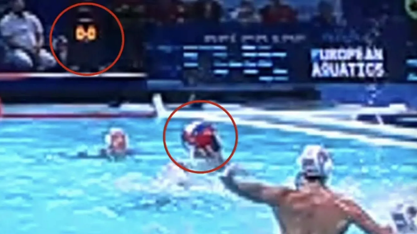 Mali sat ne meri desetinke, dok onaj na velikom ekranu – meri. Prema pravilima se zvanično vreme prikazuje isključivo na satu za merenje šuta i svi ostali vizuelni prikazi na bazenu mogu uključivati kašnjenje od delića sekunde. Takvo objašnjenje ponudila je Evropska federacija vodenih sportova...