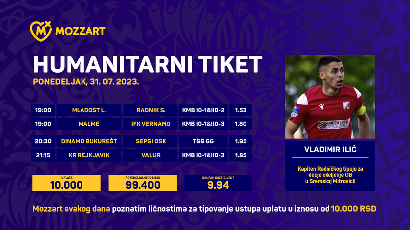 Humanitarni tiket u podne: Vladimir Ilić tipuje za dečje odeljenje OB u Sremskoj Mitrovici